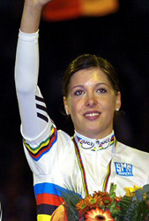 Weltmeisterin vor Teamkollegin Sandra Beck Bronze für die Gisingerin Denise Boller - Sarah Kohl auf Platz 4 Zu einem Wettkampf alle erster Sahne entwickelte sich das 1er Kunstradfahren der Frauen. Und dabei spielte die Tagesverfassung eine nicht unwesentliche Rolle. Als erste musste die regierende Schweizer Meisterin Anita Kälin aufs Parkett. Der Wädenswilerin lief es überhaupt nicht nach Wunsch. Sie musste drei Mal vom Rad und fiel so in der Gesamtwertung bis auf Rang neun zurück. Als nächste war die junge Deutsche Sandra Beck an der Reihe. Die Junioren Europameisterin von 2003 zeigte einen starke Vorstellung und legte der Konkurrenz stolze 325,65 Punkte vor. Als erste zerbrach daran die österreichische Vizemeisterin und WM-Dritte von Tata, Sarah Kohl. Die Meiningerin musste einmal vom Rad und kam so in Zeitnot. 315,83 Punkte zeigte die Wertungstafel und dies bedeutete den undankbaren 4. Rang. 2 Starterinnen folgten noch. Und diese beiden waren immerhin die beiden weltbesten Kunstradfahrerinnen Denise Boller aus Gisingen und die regierende Weltmeisterin Claudia Wieland. Als erste kam Boller an die Reihe. Denise fuhr bis Mitte der Kür fehlerfrei, hatte kaum Punkteabzüge mussten dann aber bei ihrer Paradeübung, dem 5fachen Drehsprung vom Rad. Schade, denn es wäre heute alles möglich gewesen, aber so reichte es „nur“ zu Bronze. Denn die letzte Starterin, die regierende Weltmeisterin Claudia Wieland, zeigte das sie nicht umsonst zum zweiten Mal Weltmeisterin wurde. Eine mit vielen Schwierigkeiten gespickte, bombensicher gefahrene Kür, brachte ihr erneut den Titel. |