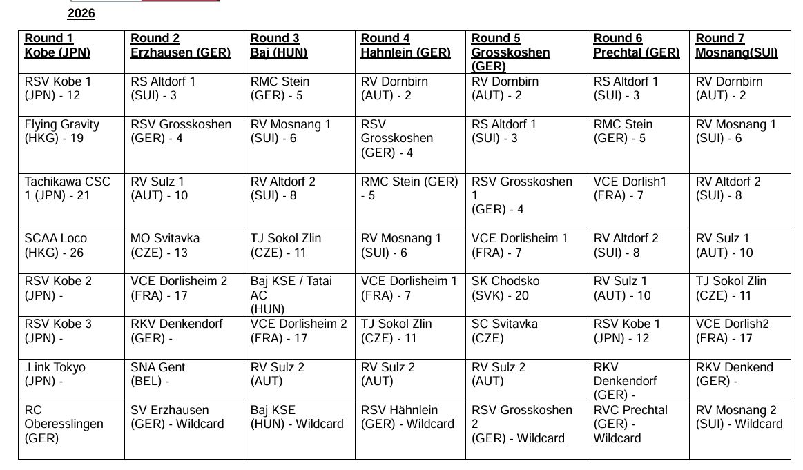 Ergebnisse 1. Runde 21. Februar 2026 - Nesvady - SVK - 2. Runde 13. Juni 2026 - TBD - ITA - 3. Runde 11. Juli 2026 - Vac - HUN - Finale - 14. November 2026 - Dorlisheim - FRA |