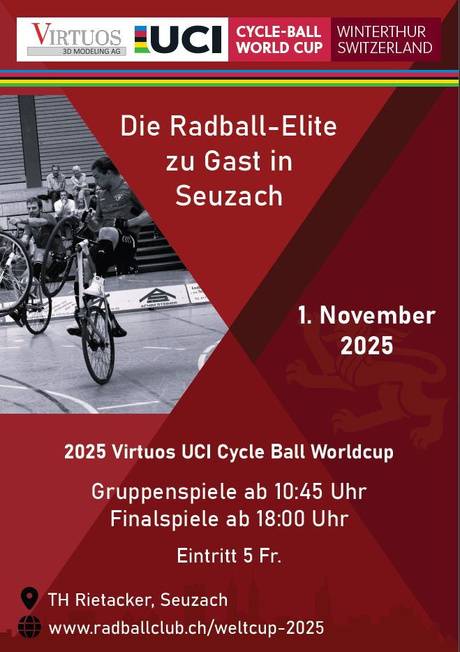 | Schweiz - 6. UCI World Cup Turnier - Samstag, 1. November 2025, 10.45 Uhr - 8472 Seuzach, Turnhalle Rietacker, Ohringerstrasse 16 |