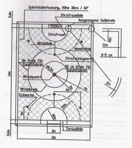a) Das Spielfeld muss entsprechend dem Reglement und dem nachstehenden Plan durch