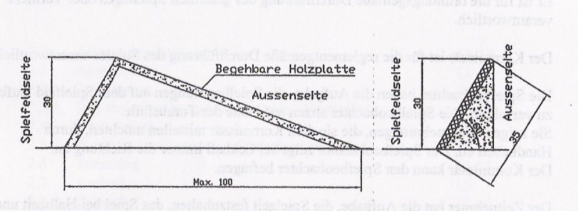 a) Die gesamte Spielfläche ist mit einer schrägen Bande aus Holz oder Kunststoff